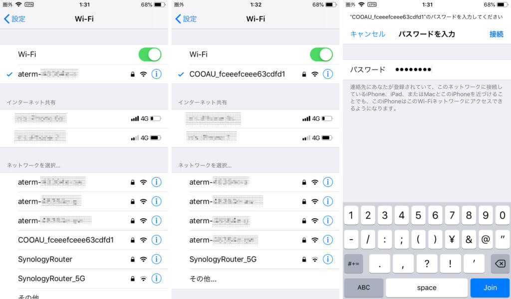 ブルーのチェックマークが「cooau_fceeefceee63cdfd1」の左に付けばD68とWiFi接続が開通しています。