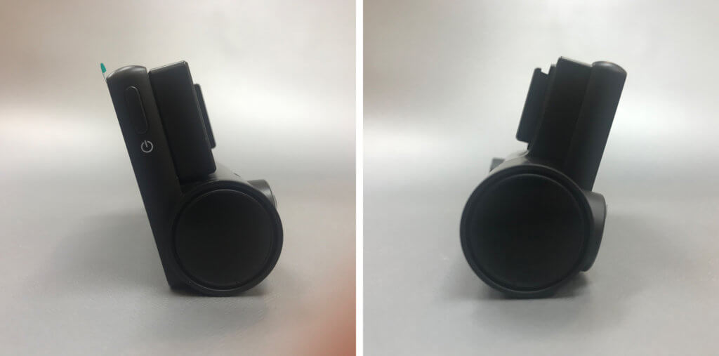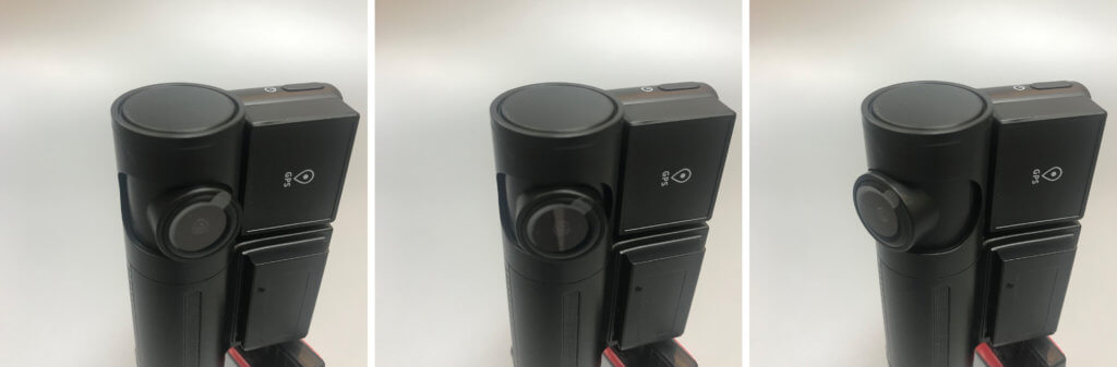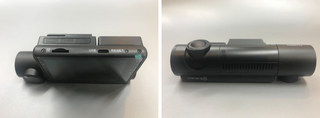 本体背面には前方録画用のカメラとGPSユニット、熱排気用のスリットが見えます。