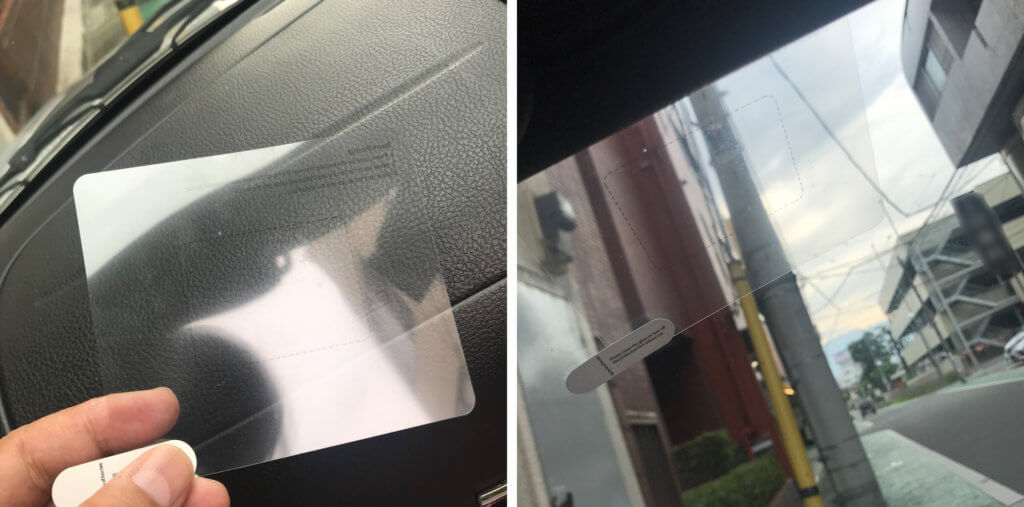 GPSの右にある長方形の四角い部分を、車のフロントグラスに貼った取り付けア