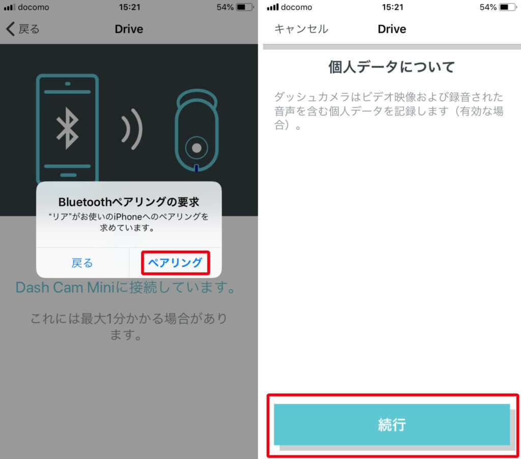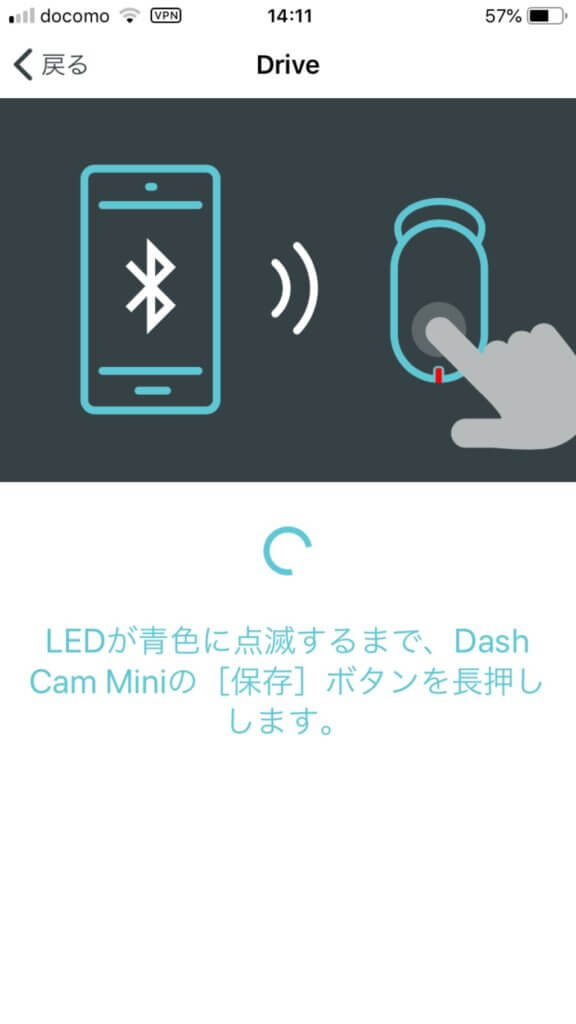 次の画面はいよいよDash Cam miniとスマホのペアリングです。
