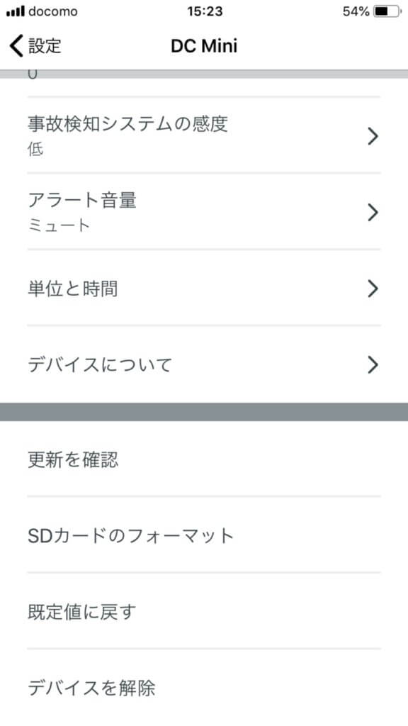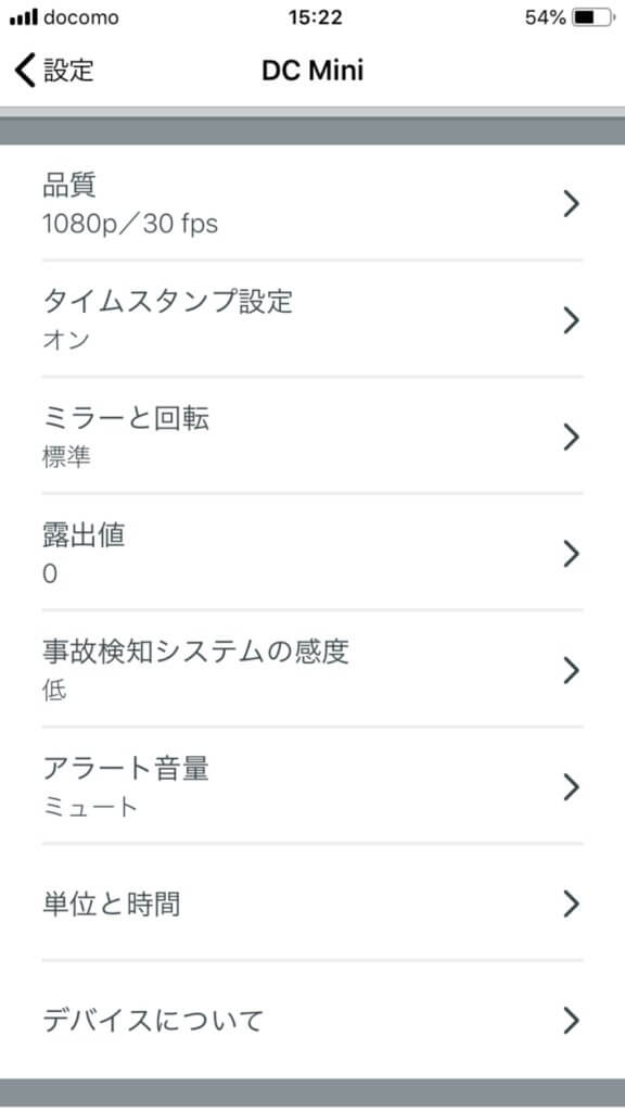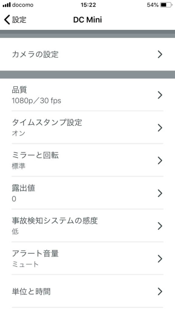 するとDash Cam miniの詳細設定画面が現れます!