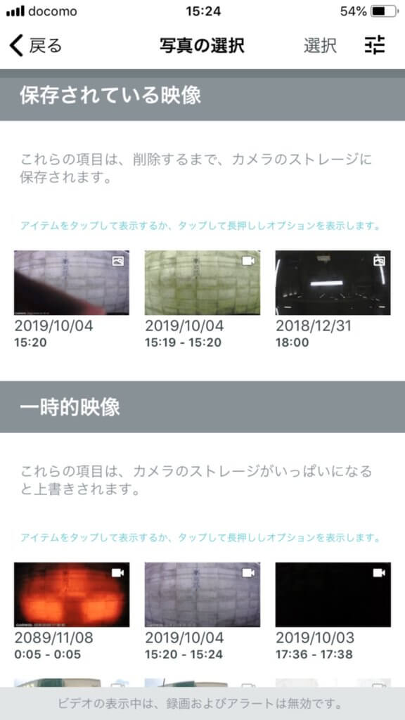 画面が変わるとDash Cam mini本体のMicroSDカードに保存されている動画(又は静止画)が一覧表示されています。