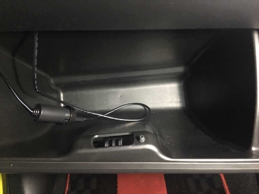 そのアダプターのUSBコネクタに挿したケーブルは、その後グローブボックスの裏側で余分なケーブルはまとめられてどこかに消えていたのでした。