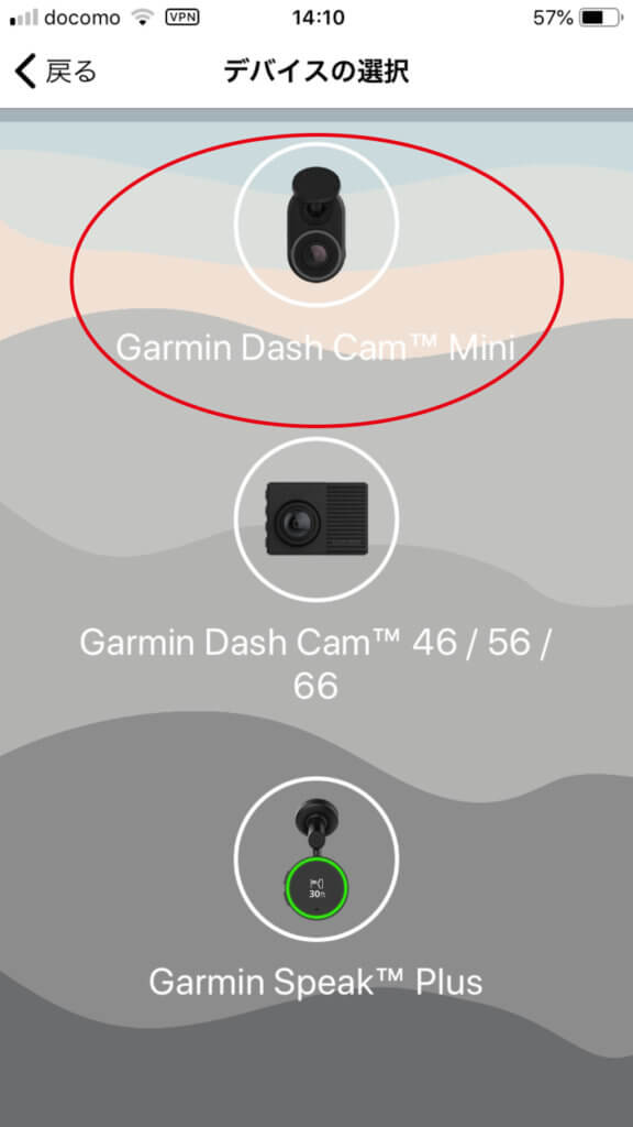するとまた上から3つのアイコンが並んでいますので、一番上の「Garmin Dash Cam™️ mini」をクリックしてくださいね。