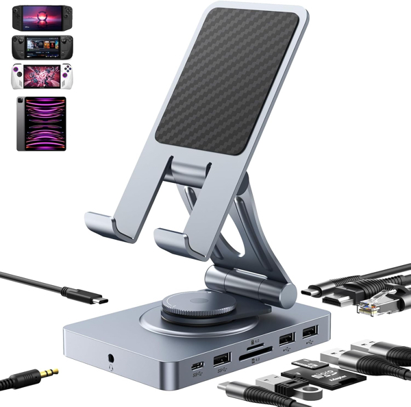 このAnker 551タブレットスタンドに搭載されているコンパクトなUSB Type-Cハブを使うと、それも簡単に実現出来てしまう様に思えて来ます。