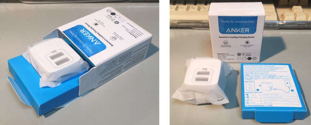 言わずと知れたスマホやパソコン周りのガジ有名メーカーAnkerが発売した小型の2ポート急速充電器です。
