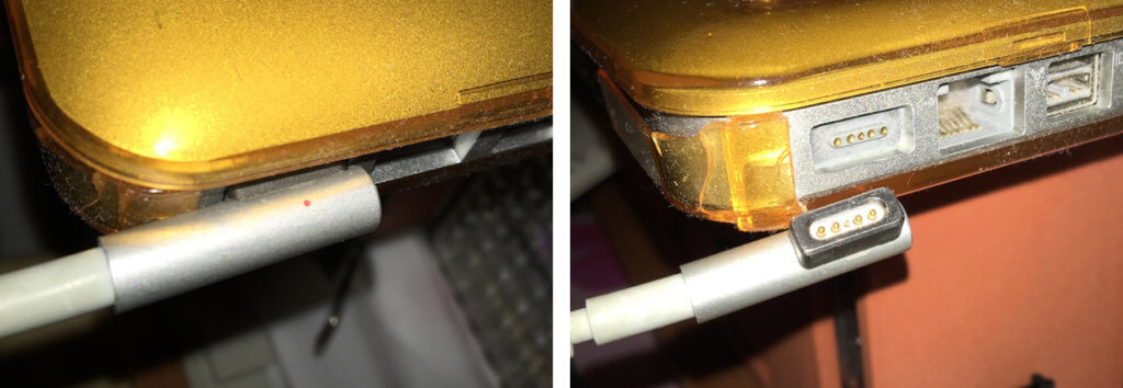 もしあなたがパソコンのケーブルに脚などを引っ掛けたらパソコンは当然床に落ちて損傷します。しかしマグセーフならケーブルが抜けるだけ!パソコンはテーブルの上で鎮座していると言うわけです。