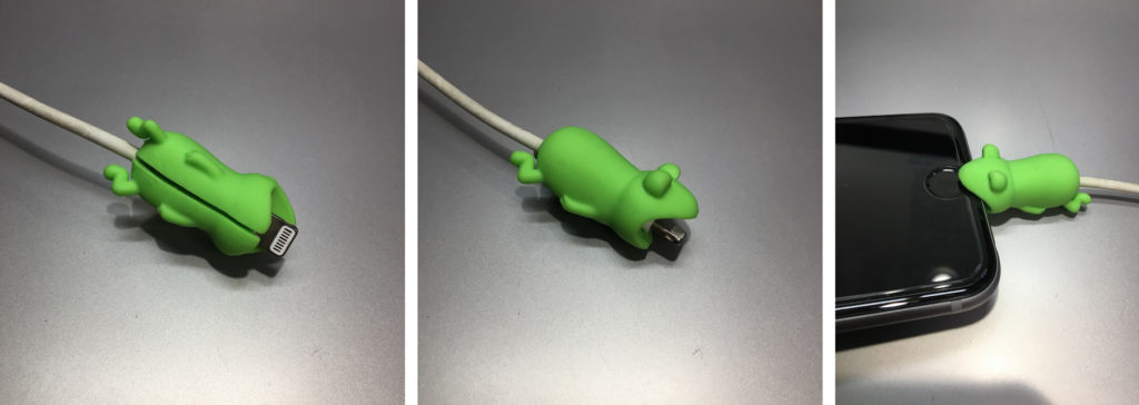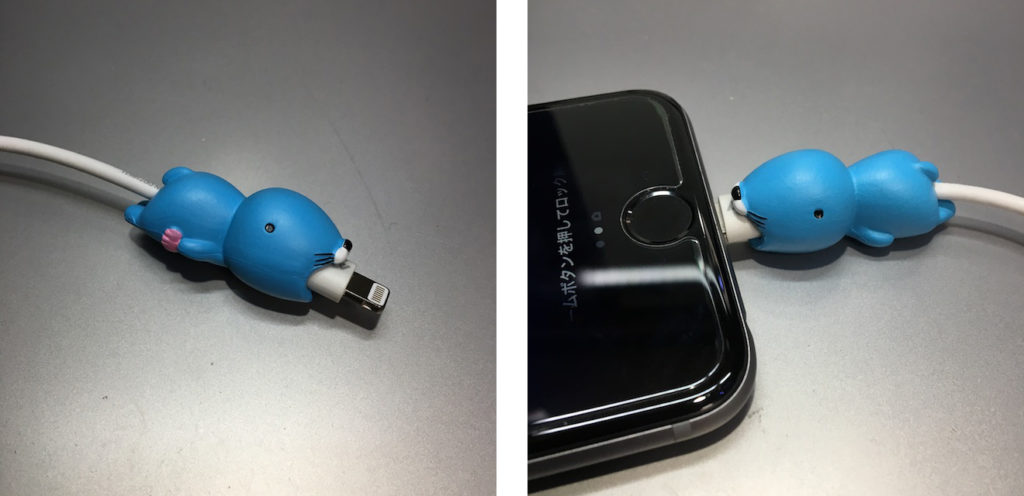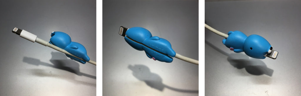 そして口の部分にLightningケーブルのコネクタが来るようにケーブルをゆっくりと引っ張ります、非常に単純ですよね!