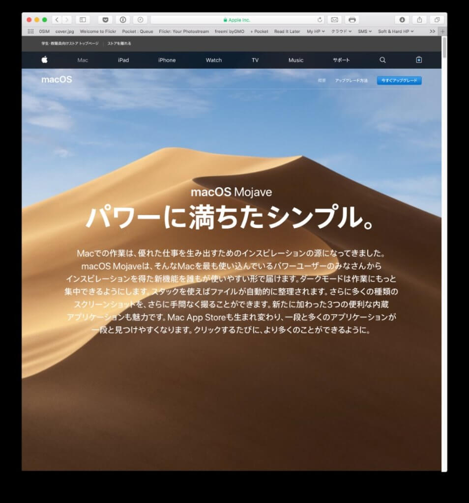 それを押すと以下の「macOS Mojave」のダウンロードページに飛んでしまうのです。