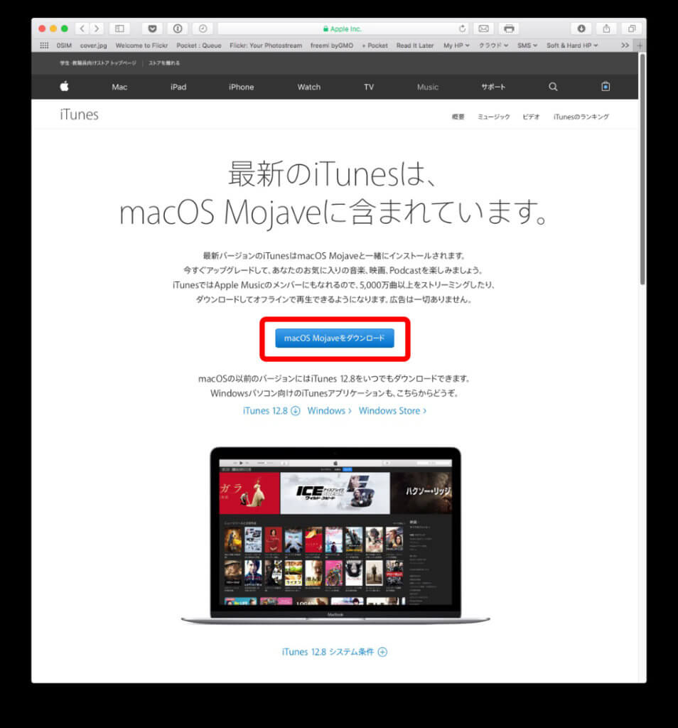 ・今回は何故かMojaveをインストールしないとiTunesを再インストール出来ないと書いてある(AppleのiTunesのダウンロードページを見る限りそう書いてあると僕は思えた)