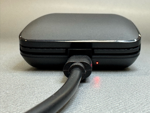 充電中は赤色LEDライトが点灯し、充電が終了すると消灯します。