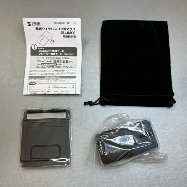 付属品は2.4GHz USBレシーバー・ガジェットスタンド・ポーチ・日本語マニュアル兼保証書が付属してきます。
