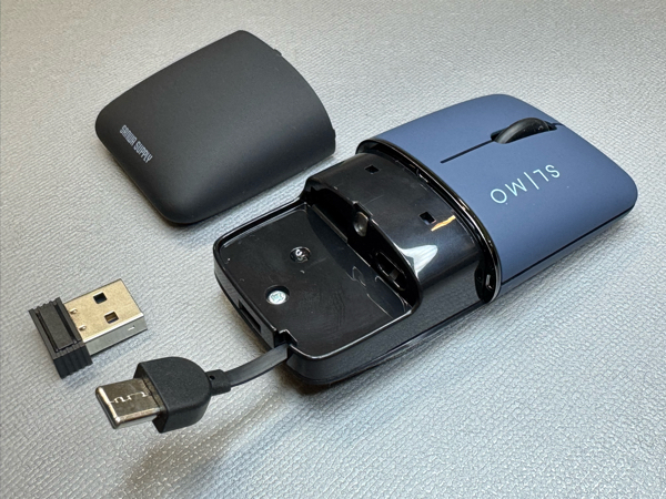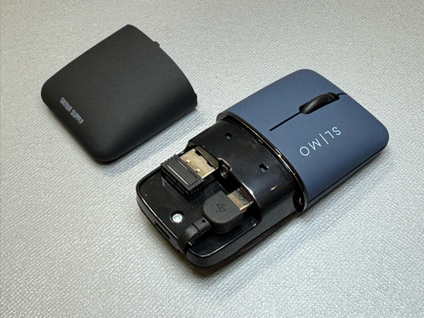 本体内には2.4GHz USBレシーバーと充電用のUSB-Cケーブルが収納されています。(USB-Cケーブルは外せません)