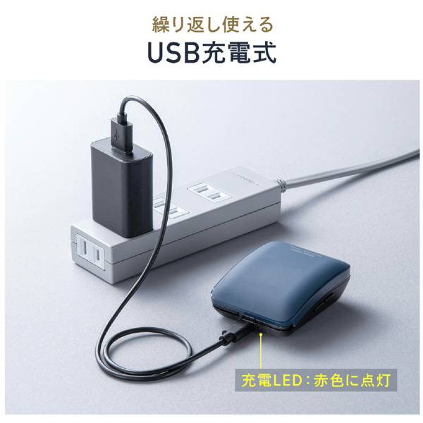 充電中は赤色LEDライトが点灯し、充電終了時には消灯します。