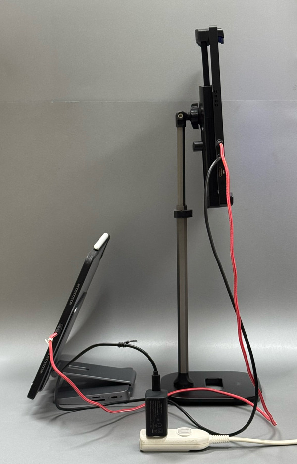 USB Type-Cケーブルは分かりやすい様に「Vimonic M160T06とiPa Proとの接続」には赤いケーブルを、「Vimonic M160T06と電源アダプターとの接続」には黒いケーブルを使用しています。