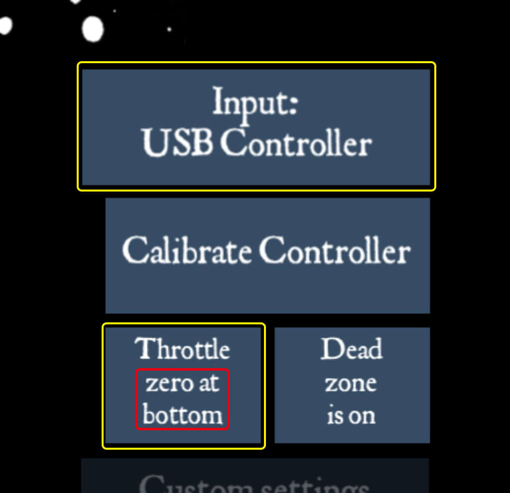 しかしこのUSB接続型ゲームバッドを使用する時には、上から三段目の左ボタンが「Throttle zero at center」になっていなければなりません。必ず確認してください!