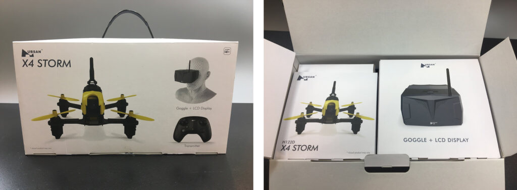 中は二つの箱に分かれていて、左がH122D X4 STORM本体、右はヘッドセットになります。