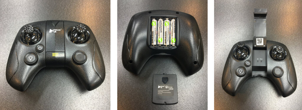 コントローラーは非常にシンプルです、正にミニドローンのそれと同一だと勘違いしてしまいます。当然操作系はミニドローンと同じなので違和感なく操作出来ると思います。因みに単4電池4本が必要です。