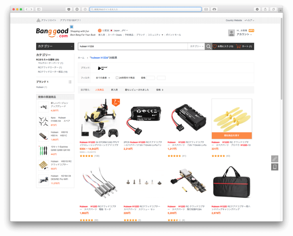 以下はHubsan H122D X4 STORMの部品のページです。このBanggoodを利用すればHubsan H122D X4 STORMのほぼ全ての部品が安価で入手出来ます!