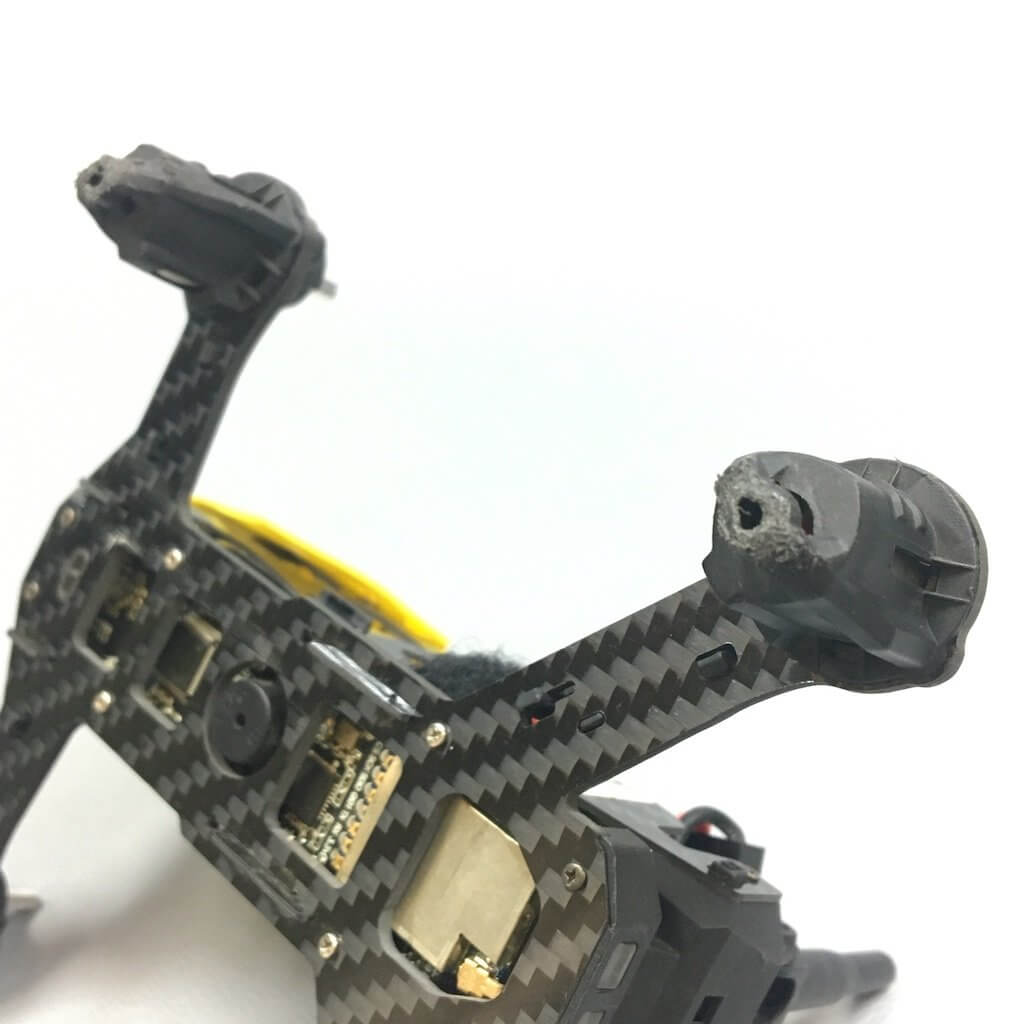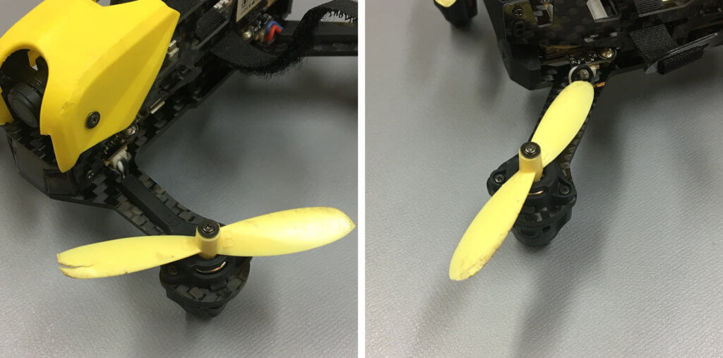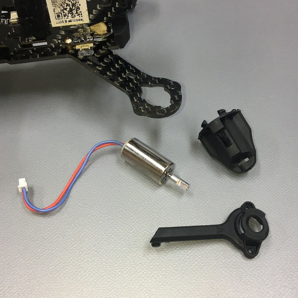 またモーターはプロペラが何かに接触・停止すると過負荷が生じて焼き付いたり、内部の磁石などが破損したりします。