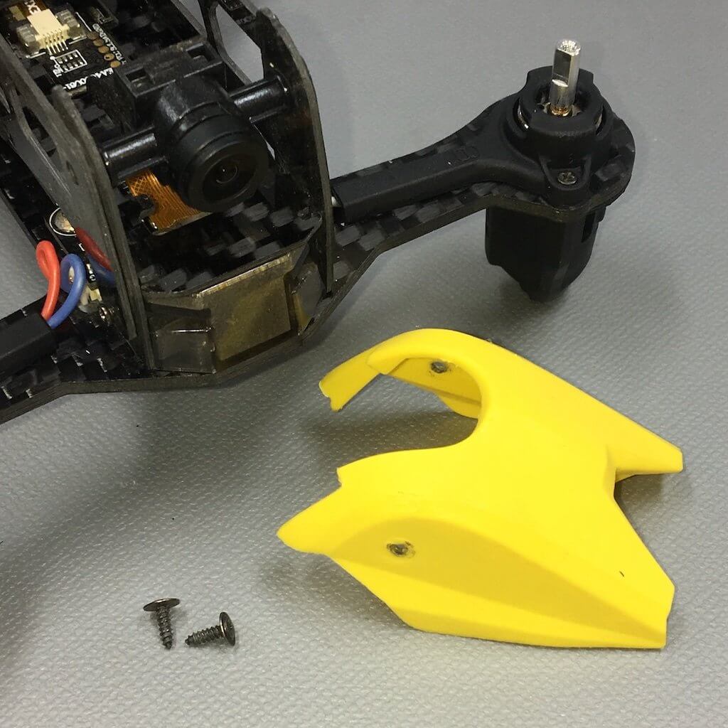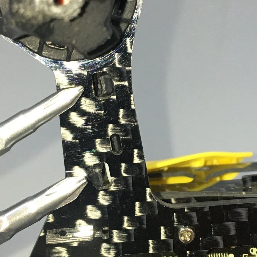 上でも書きましたが、レース用ドローンはレース中の故障や事故に直ぐ対応する為に部品交換がとても容易に作られています。