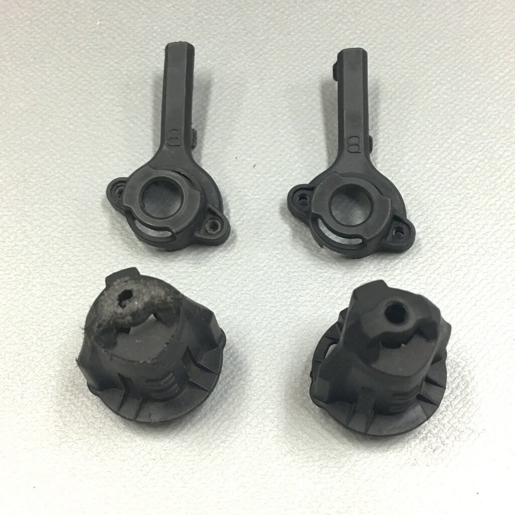 外したモーターカバーと脚を新品の部品と比べてみましょう、左が外した物、右は新品です。