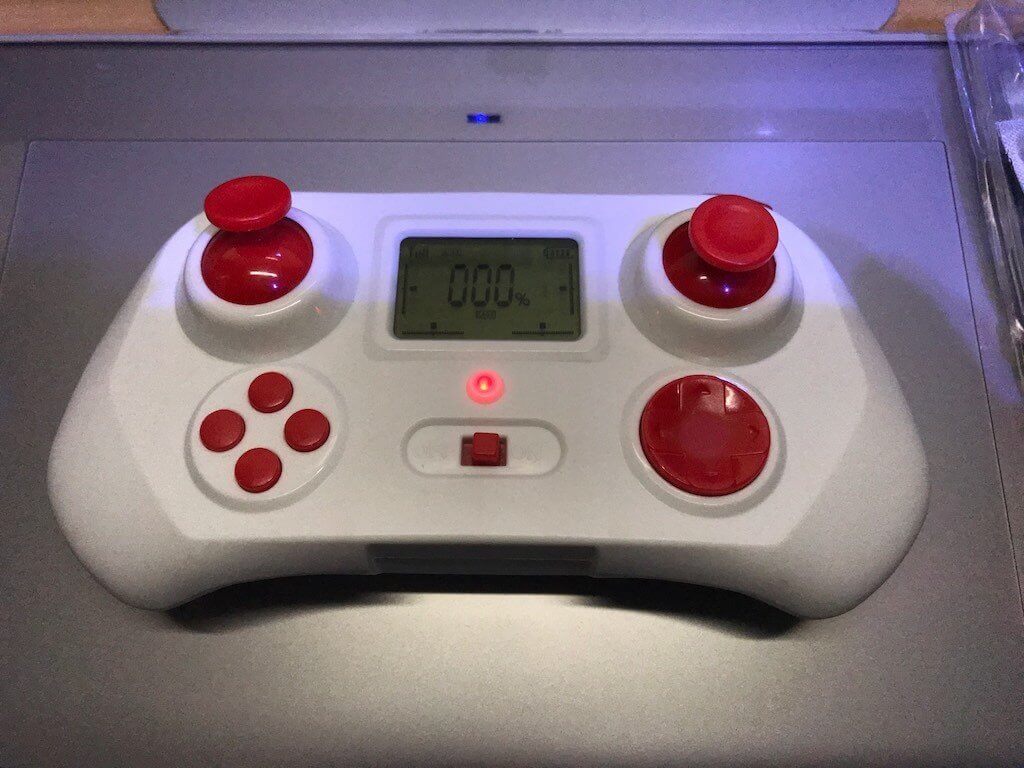 パッケージにはドローン本体、フルサイズのコントローラー、USB充電コード、予備のブレードセットと予備の黄色いボディ、取説が入っていました。