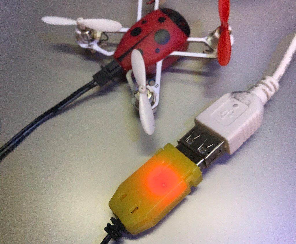 機体の充電時間は約15分、USBコネクタが赤く光ると充電完了です。