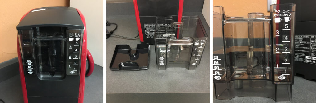 コーヒーメーカーはタンクを外して水を給水して、その水を湧かしてドリップします。