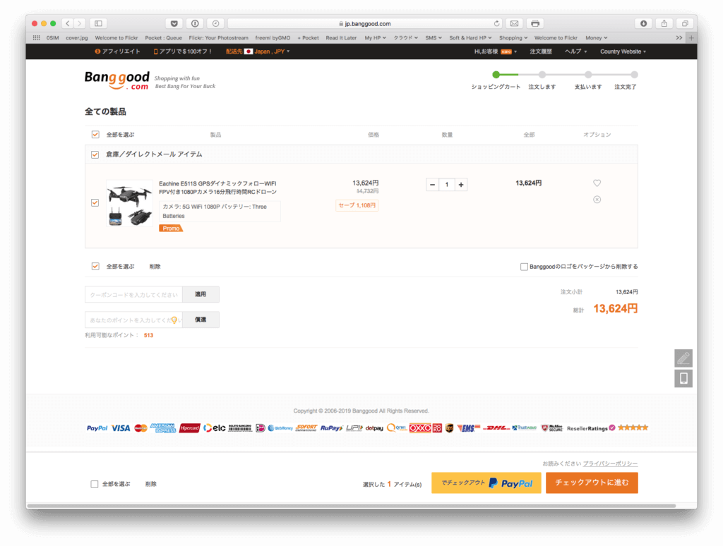 皆さんも是非一度Banggood.comを利用して安価にドローンやホビー、家庭用品などを入手しませんか!