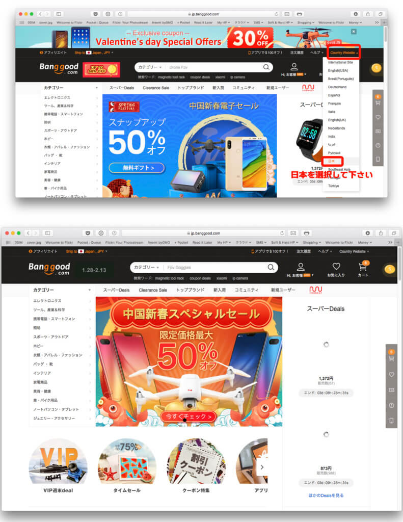 以下をクリックしてBanggoodのトップページにアクセスして下さい!