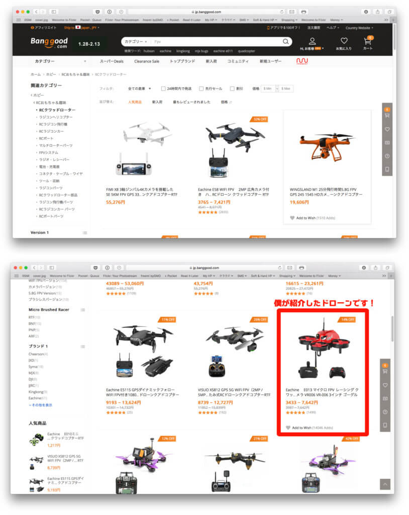 今回僕はあるメーカーの中華製ドローンをBanggood.comと言うショッピングモールで入手しました。そして皆様にそのBanggood.comの安さと便利さをお伝えしようと思います。