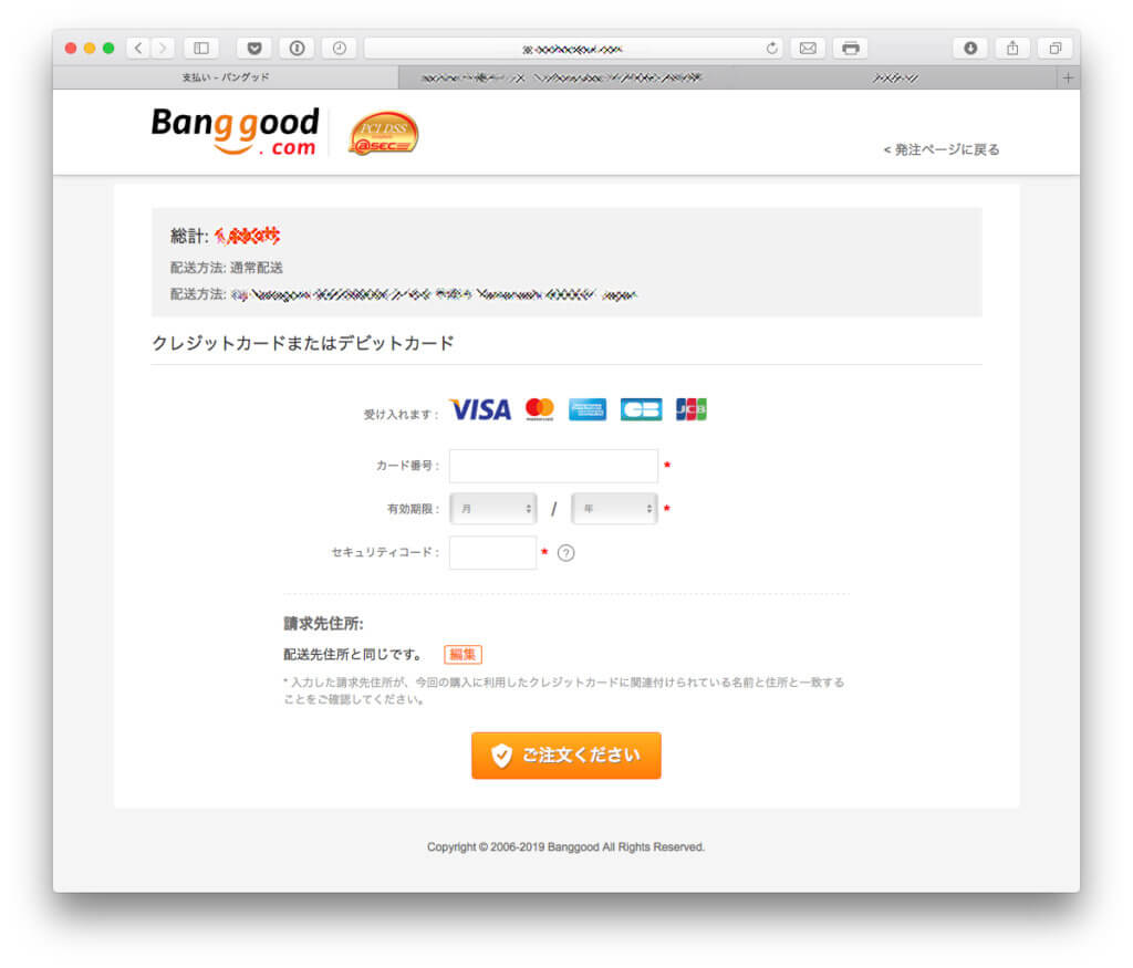 ついに注文画面です。自分の注文を確認したら支払い方法を選びます。