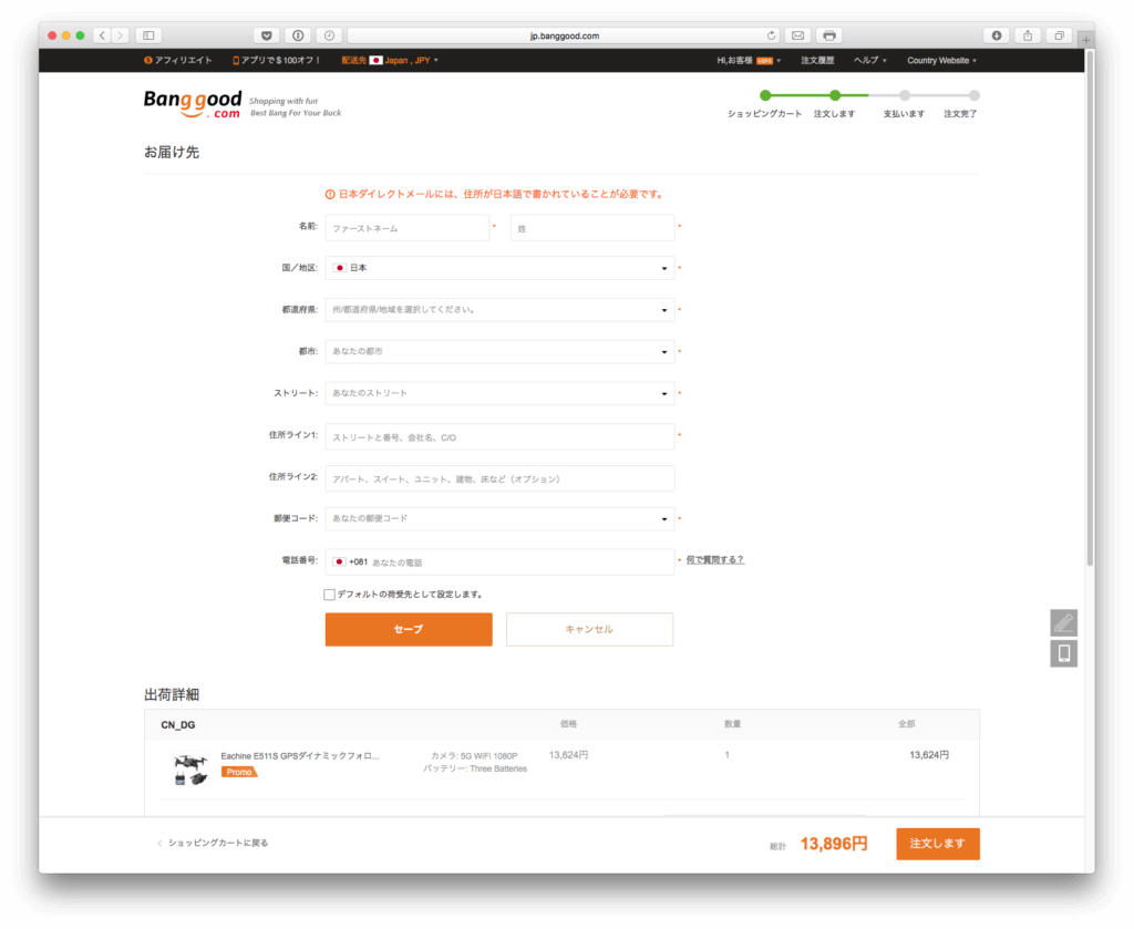 Banggoodで実際に買い物をしてみよう。