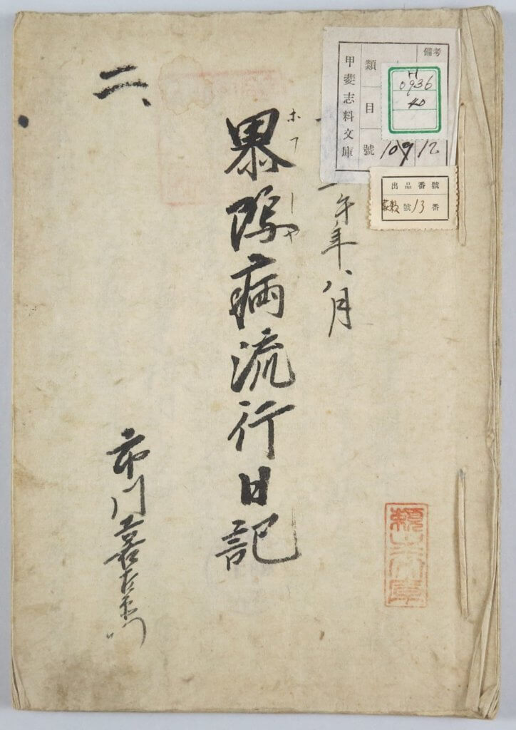 暴瀉病流行日記とは、市川村(いちがわむら、旧八幡村、現山梨市)の名主(なぬし)、喜左衛門(きざえもん)が記した日記です。