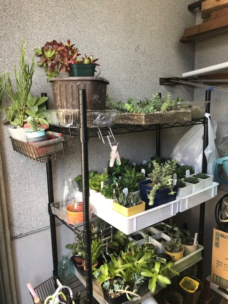 そこで今年は屋上の塔屋の入り口に金属ラックを作り、そこに多肉達を収納してみたのです。