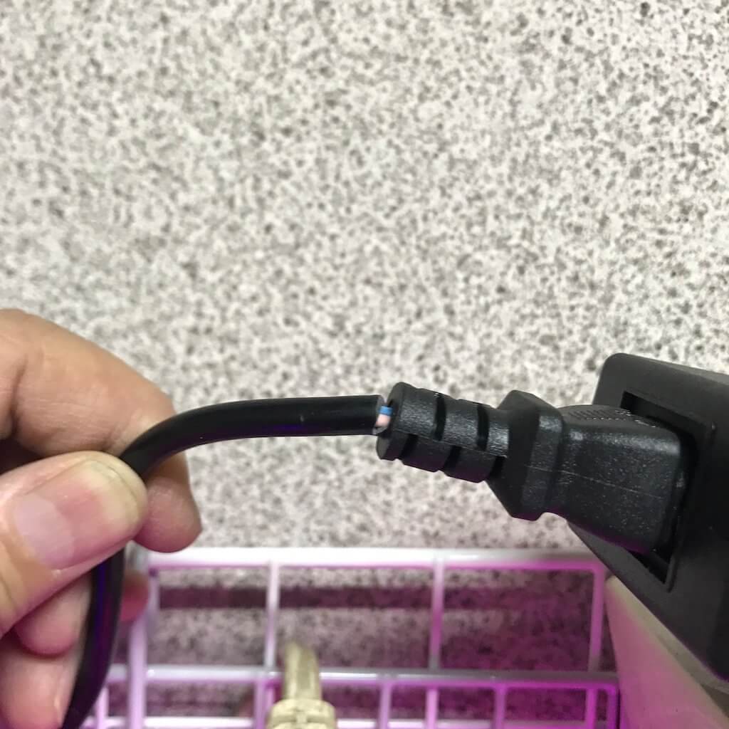 もう一つ、コンセントタイマーから給電する電源ケーブルの根元の被服が破れているように見えました。