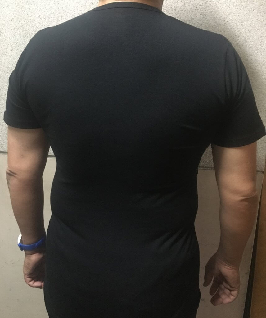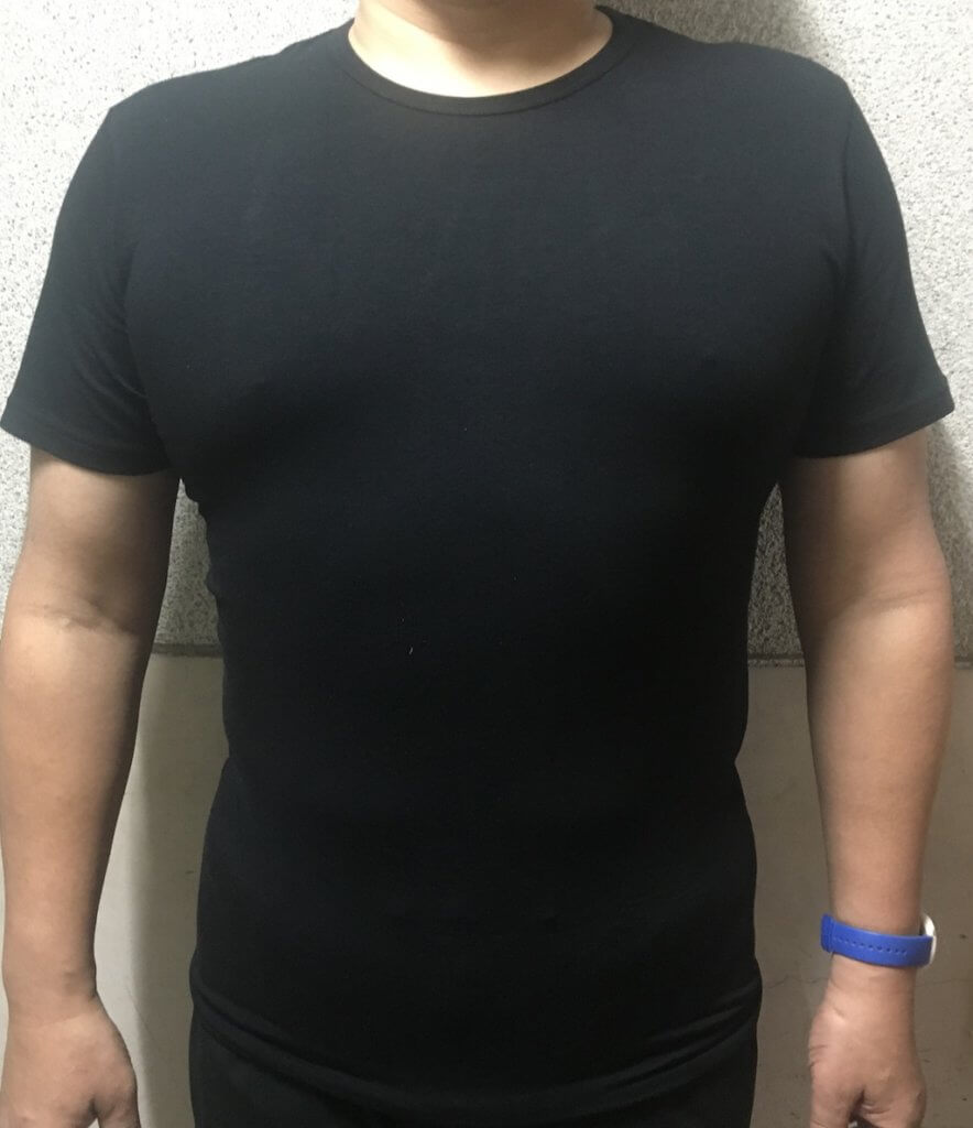 サイズはLサイズ。身長は170cmで体はかなり丸いです。
