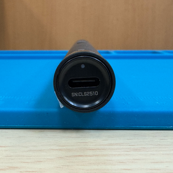 充電中は赤いLEDランプが点滅し、満充電時には白色に点灯します。